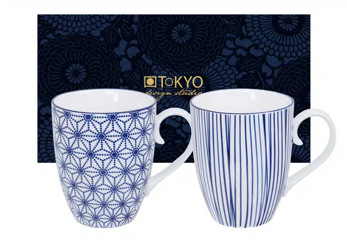 Blau / Weiß Becher-Set Stern / Linien – Nippon Blau – Set mit 2 Stück – 8,5 x 10,2 cm 380ml