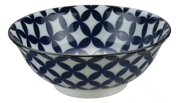 Asiatisches Geschirr, Blau/Weiße Schale, Mixed Bowls Kollektion, Durchmesser 20,3 cm, Höhe 8 cm, Fassungsvermögen 1000 ml, Suppenschale, Nudelschale, Salatschale, Blaue Blumen, Geometrische Formen, Porzellan, Langlebig, Täglicher Gebrauch, Orientalisch, The Oriental Shop, Asiatische Küche, Asiatisches Design.