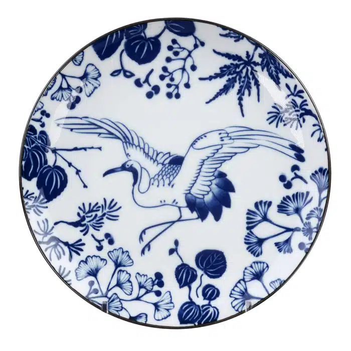 Blau / Weißer Teller Kranich – Flora Japonica – 16 x 2 cm