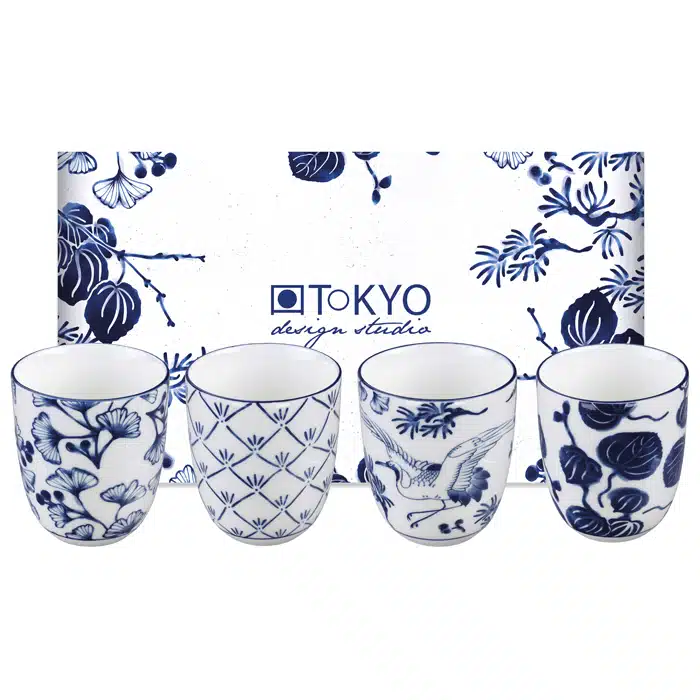 Blau / Weißes Becherset – Flora Japonica – 4er Set – 6,7 x 7,7 cm 170 ml