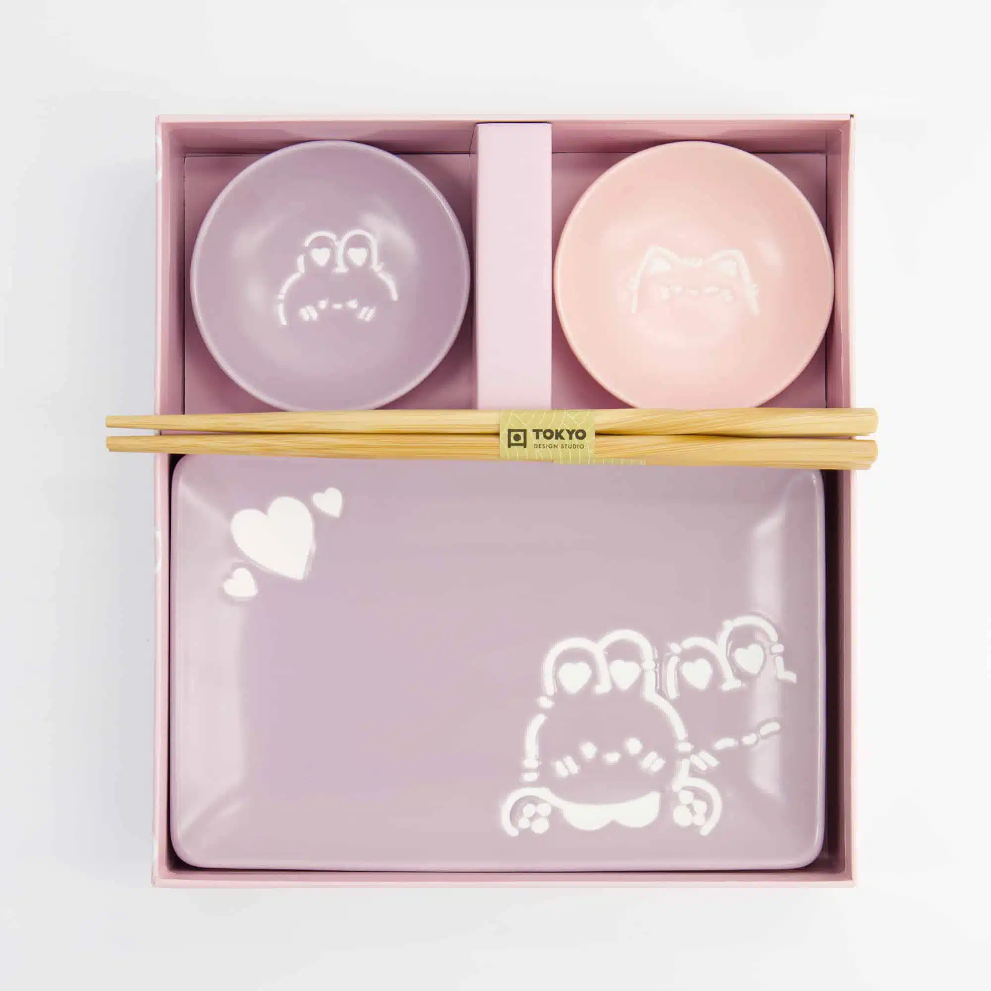 Die Kawaii Sushi Geschenkset mit Hase und Katze bringt niedlichen Charme auf den Tisch. Ideal für ein Sushi-Dinner zu zweit oder als süßes Geschenk für Fans japanischer Ästhetik. Mit liebevollen Details gestaltet und hübsch verpackt – ein echter Blickfang.