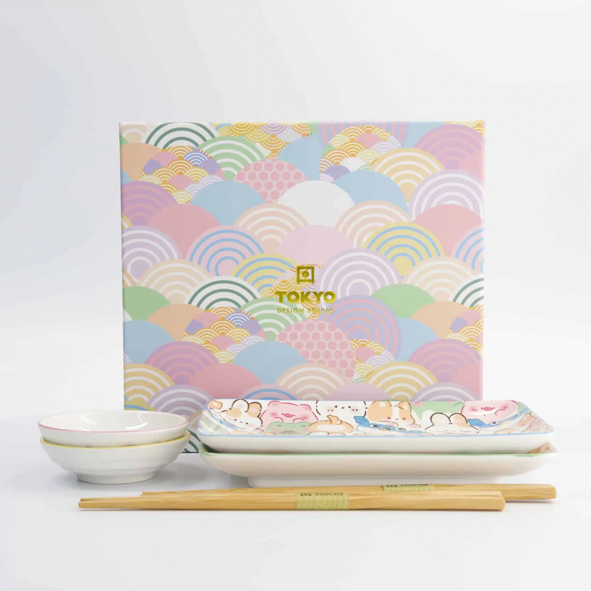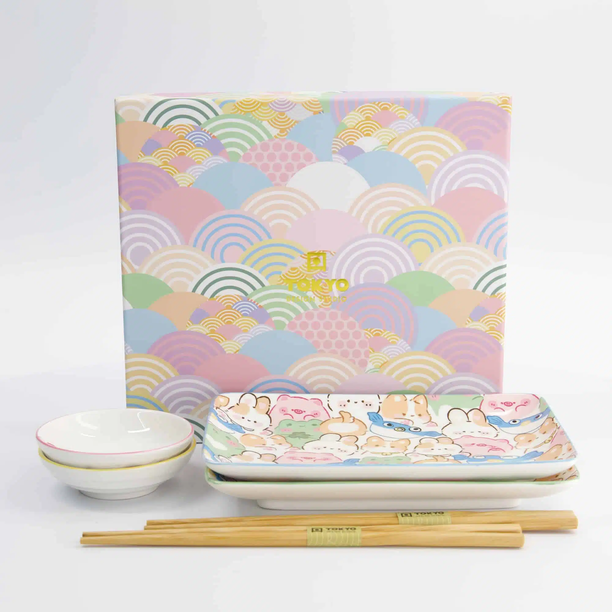 Diese charmante Sushi-Geschenkset im Kawaii-Stil bringt gute Laune auf den Tisch. Mit liebevollen Tiermotiven und verspieltem Design ist sie ideal für zwei Personen – perfekt als Geschenk oder zum Verschönern eigener Sushi-Abende.