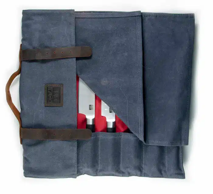 Die Leder-Messertasche auf Rolle ist ideal für Chefköche, die ständig unterwegs sind oder einfach eine praktische und sichere Möglichkeit suchen, bis zu 7 verschiedene Messer mitzunehmen.