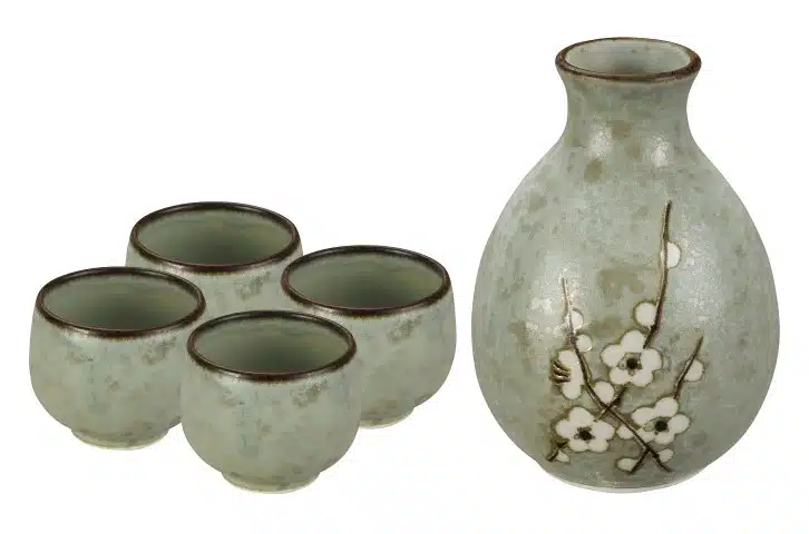 Minzgrünes Sake Set mit Sake Flasche und 4 Tassen – Soshun – 3,7 x 12 cm 50/290 ml