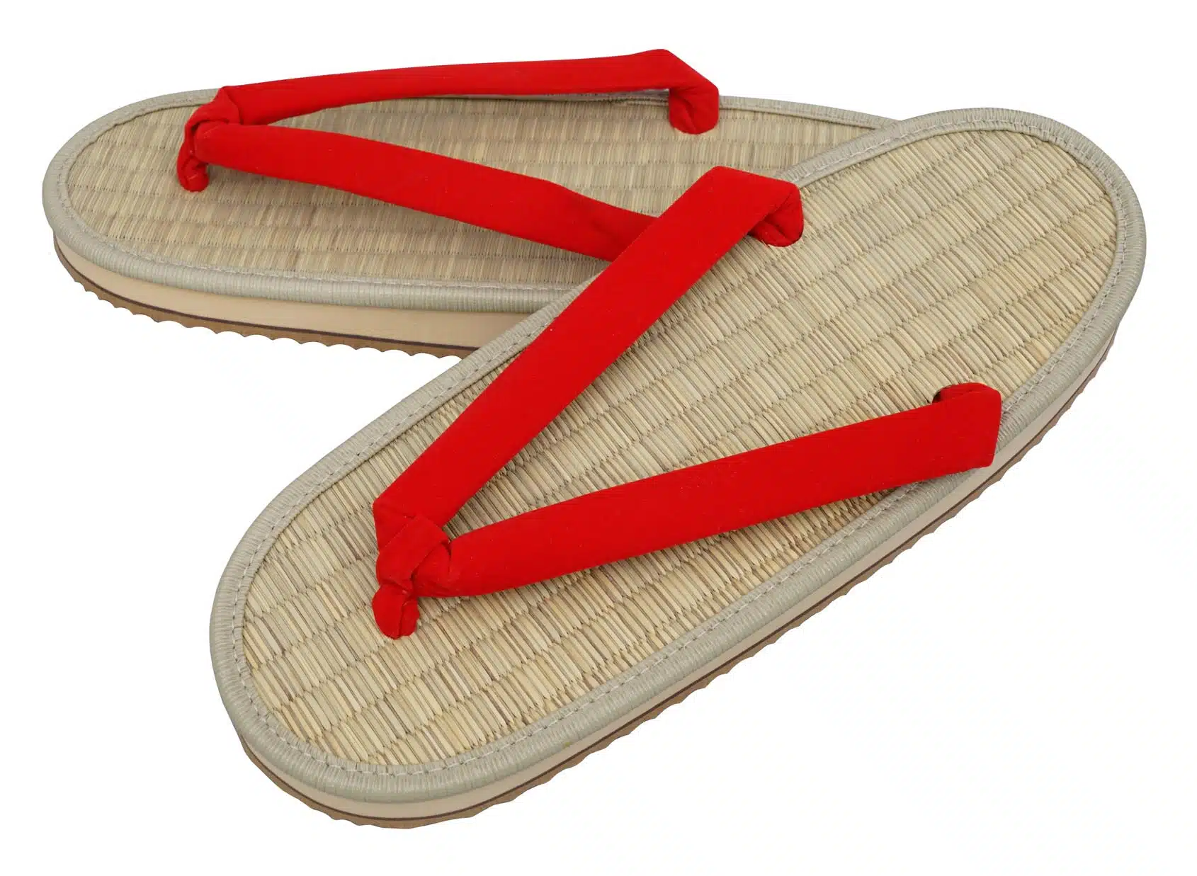Diese authentischen japanischen Hausschuhe mit ihren auffälligen roten Bändern bieten eine einzigartige Kombination aus Komfort und traditioneller Ästhetik.