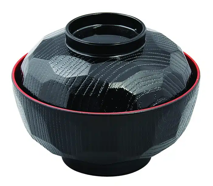 Schwarz / Rot Schüssel mit Deckel – Lackwaren – 12 x 9,5 cm