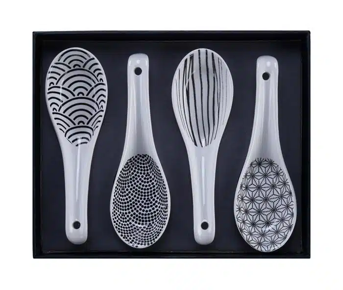 Schwarz / Weißes Löffelset – Nippon Schwarz – Set mit 4 Stück – 13,8 x 4,8 cm