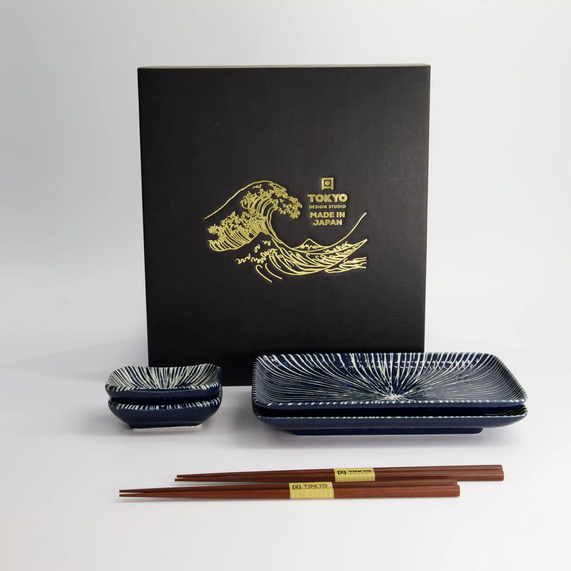 Tokyo Design Studio – Blue Tokusa – Sushi Geschenkset – 2 Personen – 20,8×13,3×2,5cm & 8,8×6,3×2,5cm