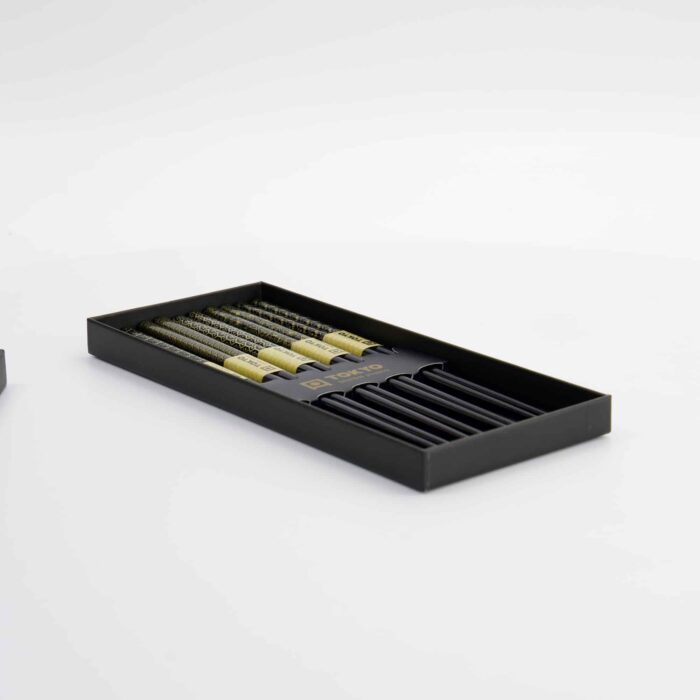Ontdek de verfijnde elegantie van Japans design met deze luxe eetstokjes giftset van Tokyo Design Studio. Deze set van vijf eetstokjes, elk met een subtiele gouden afwerking, brengt een vleugje klasse aan elke maaltijd. Perfect als cadeau voor liefhebbers van Aziatische keuken, of als stijlvolle aanvulling op je eigen tafel. De set wordt geleverd in een prachtige geschenkdoos, ideaal voor verjaardagen, feestdagen of housewarmings.