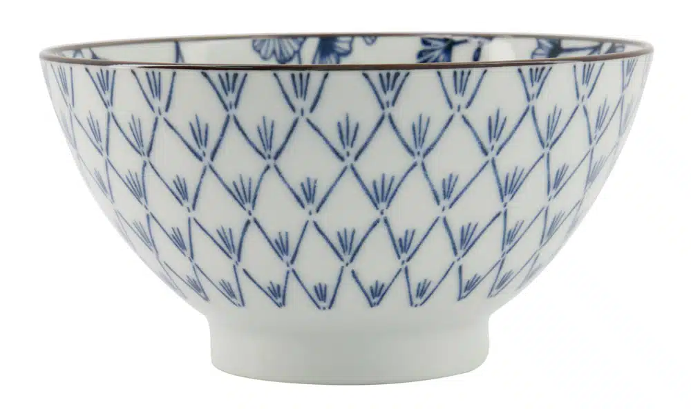 Japanische Esskultur, Tokyo Design Studio, Flora Japonica, Sori Kom, Ahornschale, 950 ml, 18×9 cm, blaues Blumenmuster, japanische Flora, Ahornblattmotive, geometrische Muster, Reisschale, Suppenschale, Salatschale, japanische Ästhetik, zeitgenössisches Design, fernöstlicher Charme, The Oriental Shop.
