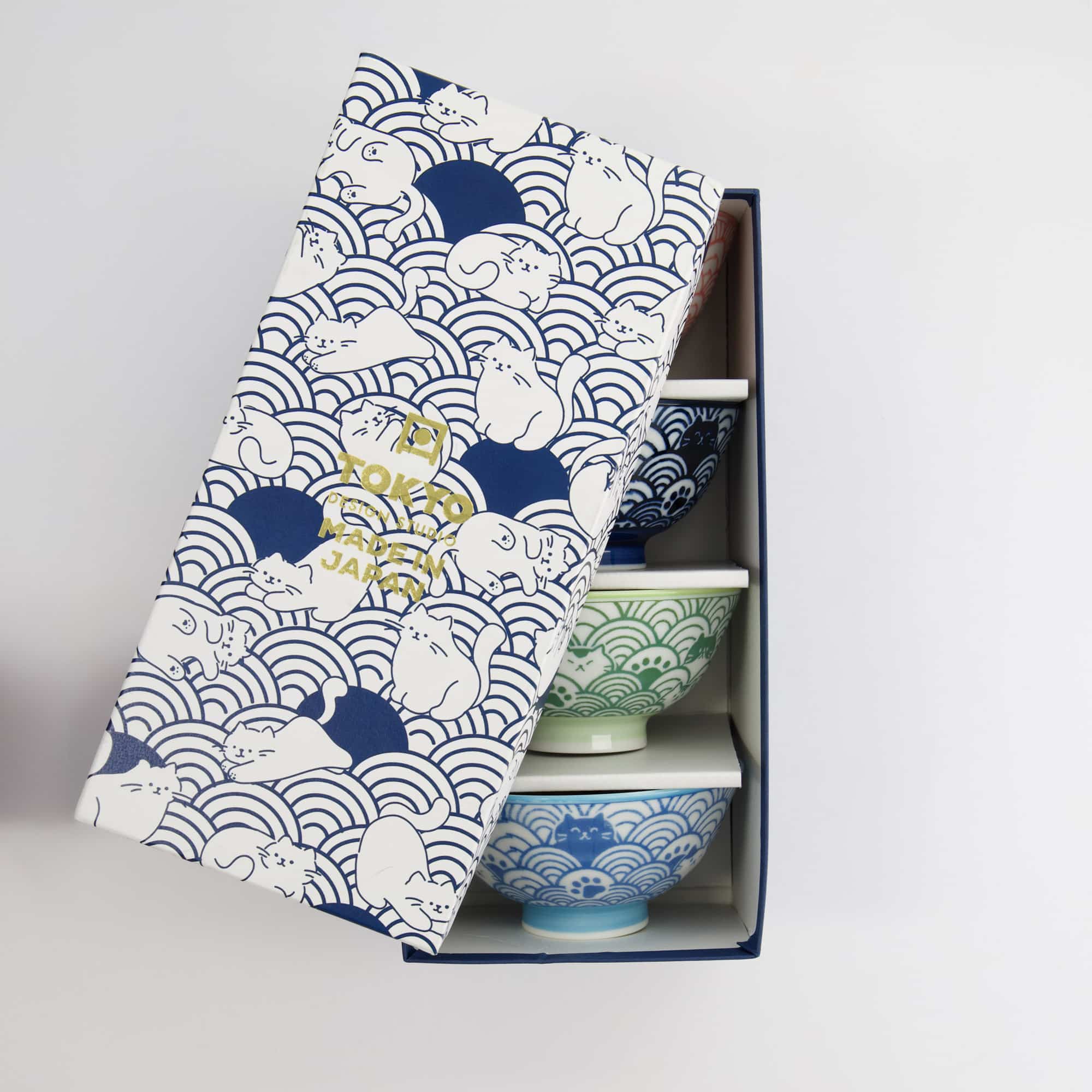 Deze schattige kommenset van Tokyo Design Studio is een perfect cadeau voor kattenliefhebbers. De kommen zijn versierd met speelse Kawaii-dierenmotieven en brengen vrolijkheid in elke keuken of op tafel. Geschikt voor ontbijt, snacks, desserts of bijgerechten. De set wordt geleverd in een luxe geschenkdoos, ideaal om cadeau te geven.