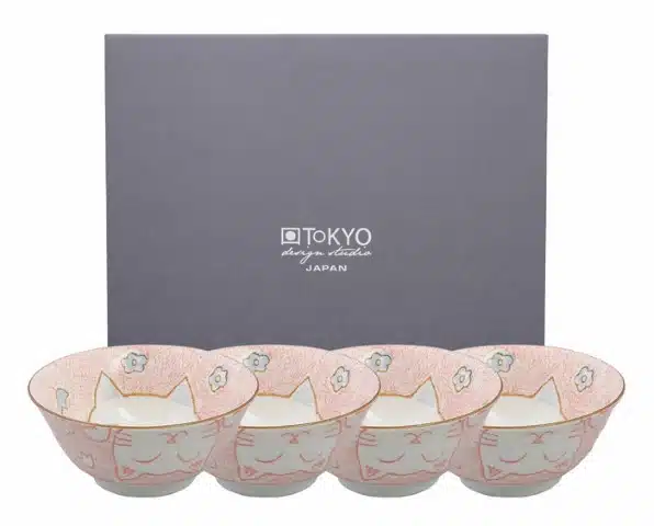 Tokyo Design Studio – Kawaii Cat – Rosa Tayo Bowls Geschenkset 4pcs – 14.8x7cm