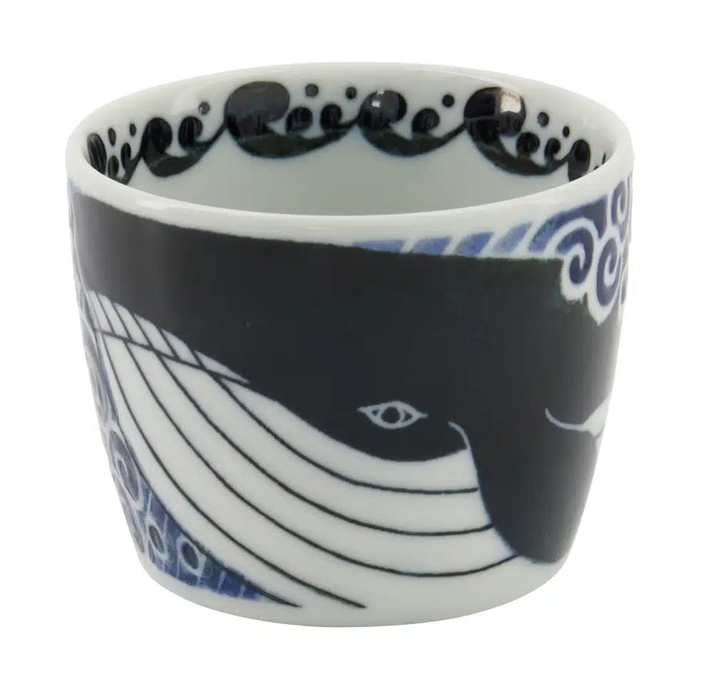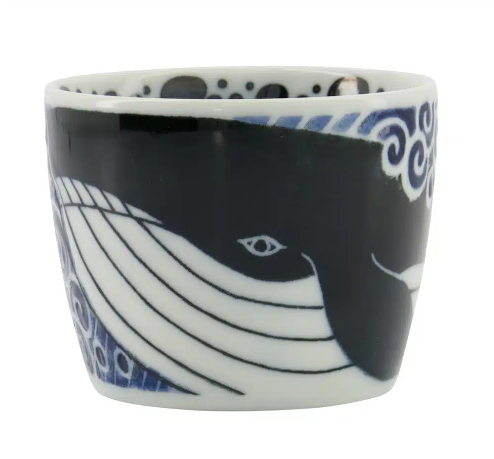 Diese niedliche Tasse, verziert mit einer verspielten Wal-Illustration, ist ein Muss für Liebhaber der japanischen Küche und des Designs.