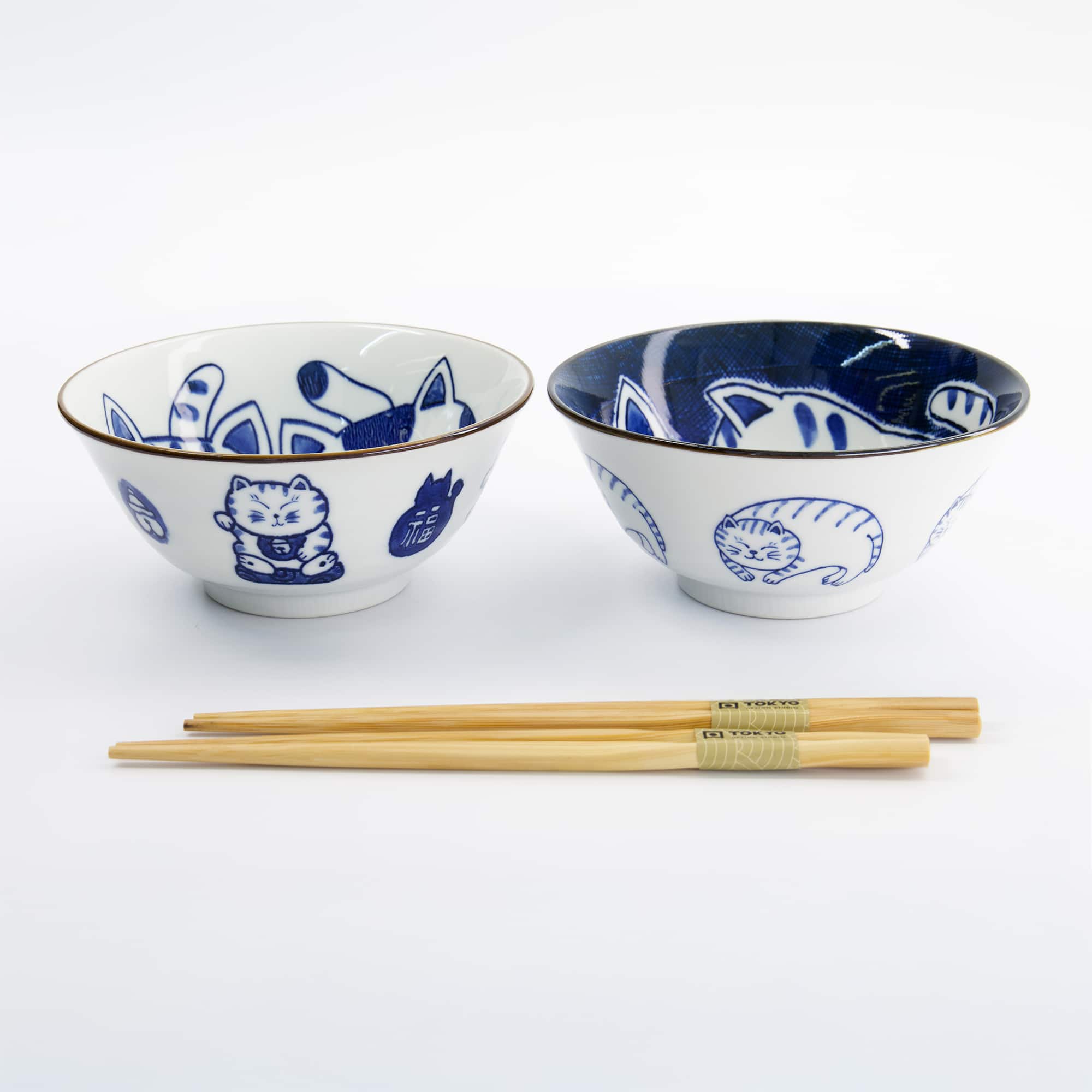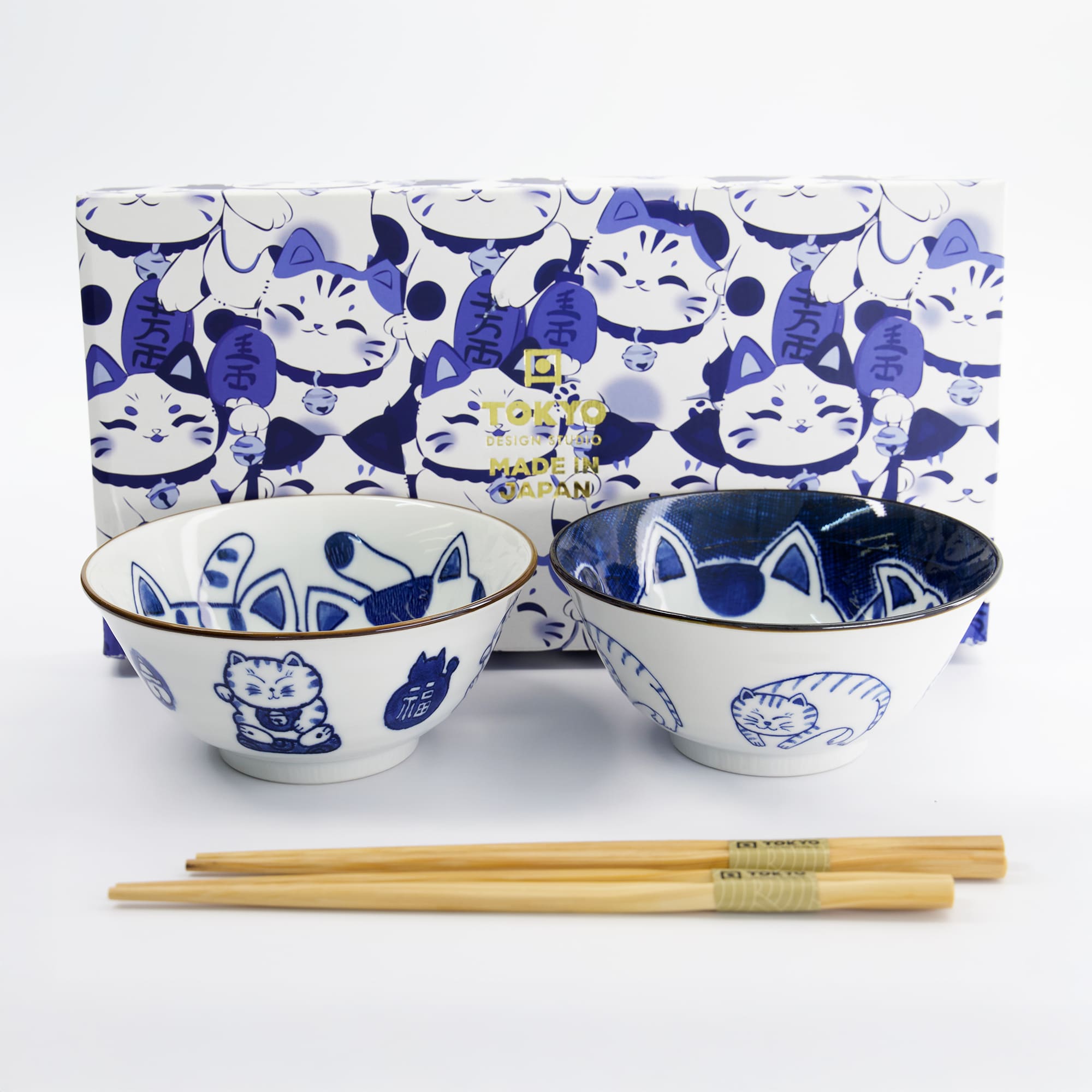 Tokyo Design Studio – Kawaii – Tayo Schalen Geschenkset 2-teilig mit Essstäbchen – Katze – 14.9×6.7cm – 500ml – 4. Variante