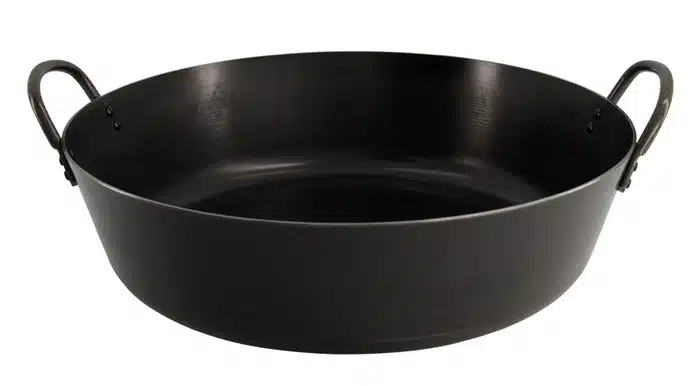 Hergestellt aus hochwertigem Eisen, garantiert diese Pfanne eine gleichmäßige Wärmeverteilung und eine lange Lebensdauer.