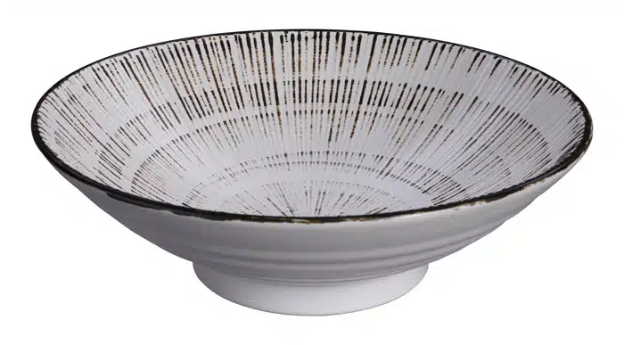 Tokyo Design Studio Mixed Bowls, Salatschüssel, 24,5 cm Durchmesser, 7,5 cm Höhe, 1400 ml Fassungsvermögen, Schwarz-Weiß-Farbpalette, Linienmuster, hochwertiges Porzellan, japanische Raffinesse, minimalistisches Design, Funktionalität, The Oriental Shop.