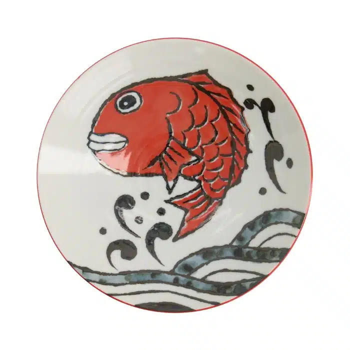 Tokyo Design Studio Seafood Tief Teller, japanische Küche, 21,7 cm Durchmesser, 5,2 cm Höhe, 900 ml Kapazität, Barsch Bild, rot und weiß, Wellenmuster, Meeresthema, Sushi, Bouillabaisse, japanische Ästhetik, The Oriental Shop.