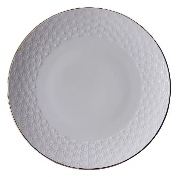 Starte deine Mahlzeit mit der Nippon White Platte aus hochwertigem Porzellan, 28,5 cm, Lieblingsgerichte, Sternenmuster, goldener Rand, stapelbar, verschiedene Muster, Nippon Blue-Kollektion, weißes Geschirr, elegantes Aussehen.