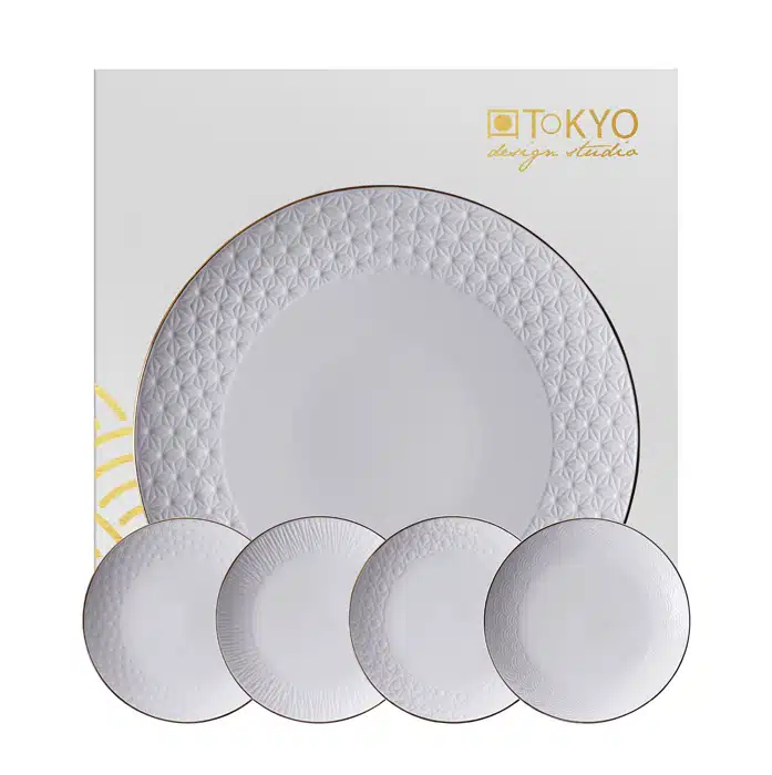Weiß / Goldenes Tellerset – Nippon White – 30,5 cm und 15 cm